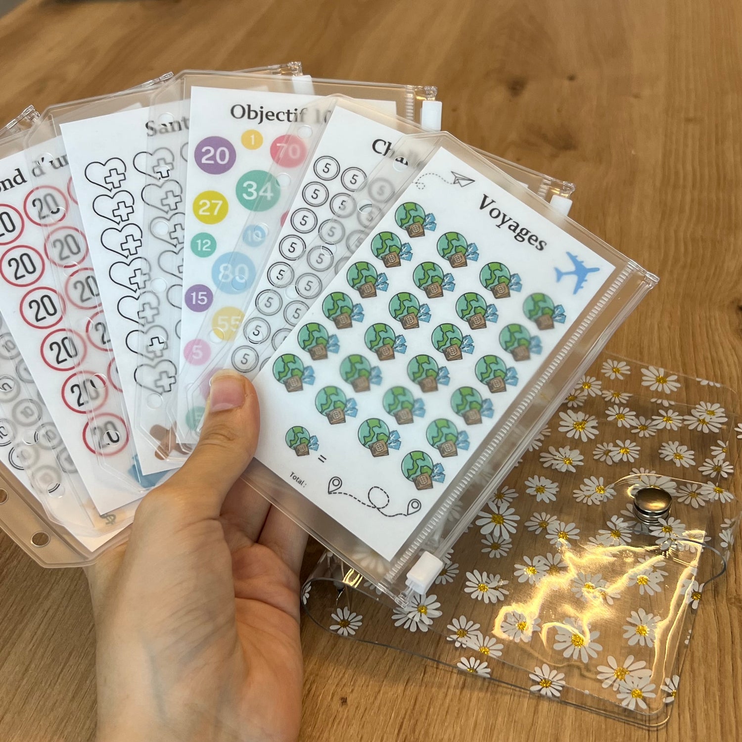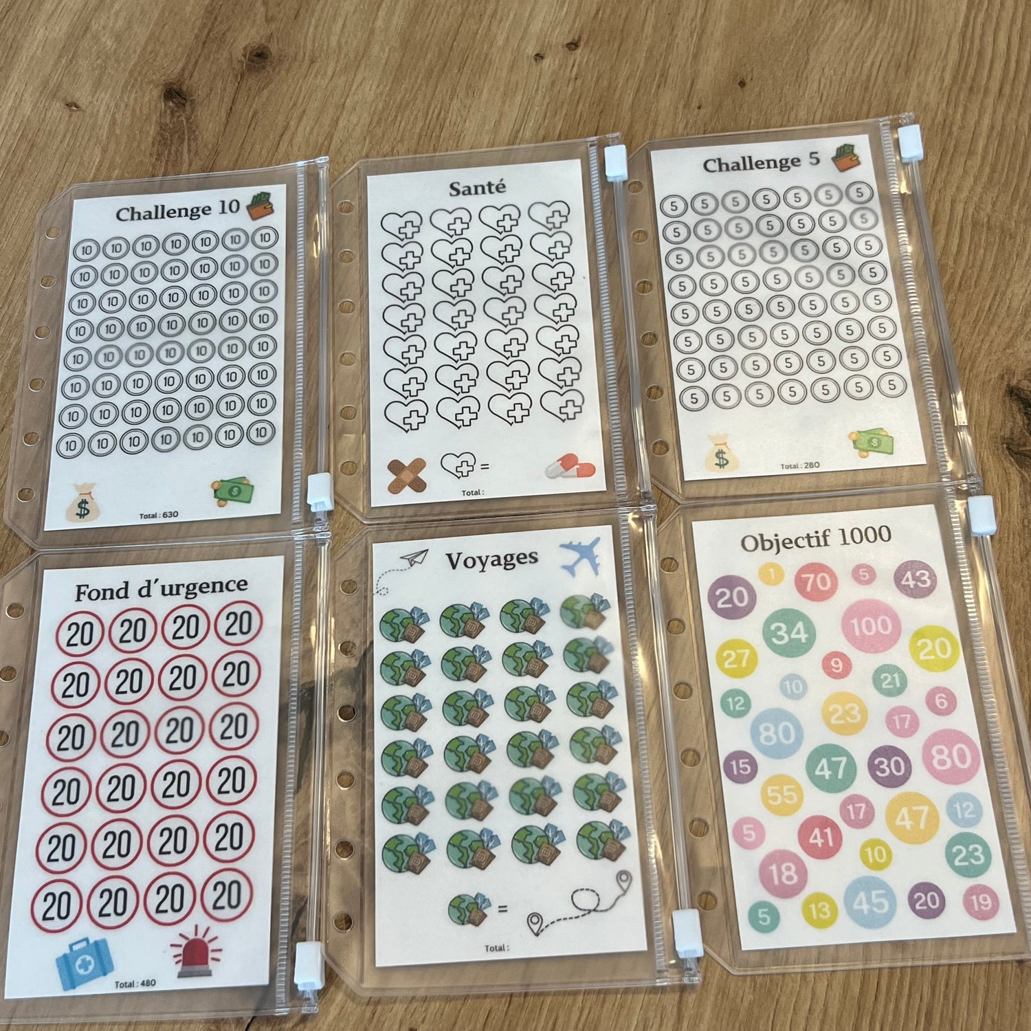 - 6 challenges de base plastifiés (5, 10, 1000, santé, voyages, fond d'urgence)